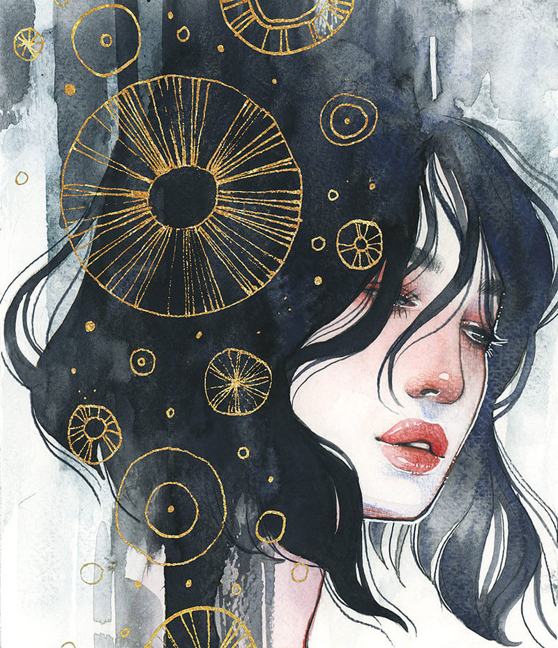 L’artista Kelogsloops utilizza gli acquerelli per realizzare i suoi bellissimi ritratti femminili, ricchi di simbolismo, poesia e magia