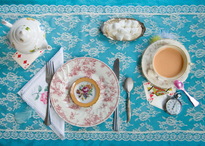 Fra i numerosi scatti che compongono “Fictitious Dishes” troviamo per esempio la tavola imbandita per il tea party di Alice nel paese delle meraviglie, il fastoso buffet ricco di prelibatezze de Il grande Gatsby e ovviamente le celeberrime “madeleines” del malinconico Swann di Proust. Ma a tavola troviamo anche il Capitano Achab di Moby Dick, Heidi e tanti altri personaggi, spesso con dei gusti davvero particolari!