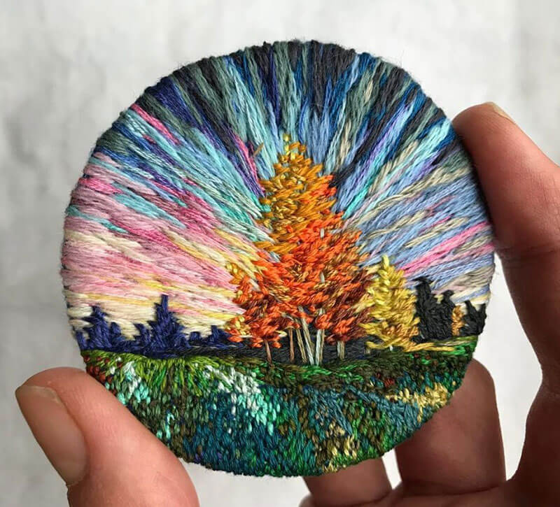 Vera Shimunia è una maestra nell’arte del ricamo e con ago e filo crea bellissimi panorami in miniatura dai colori accesi e vibranti