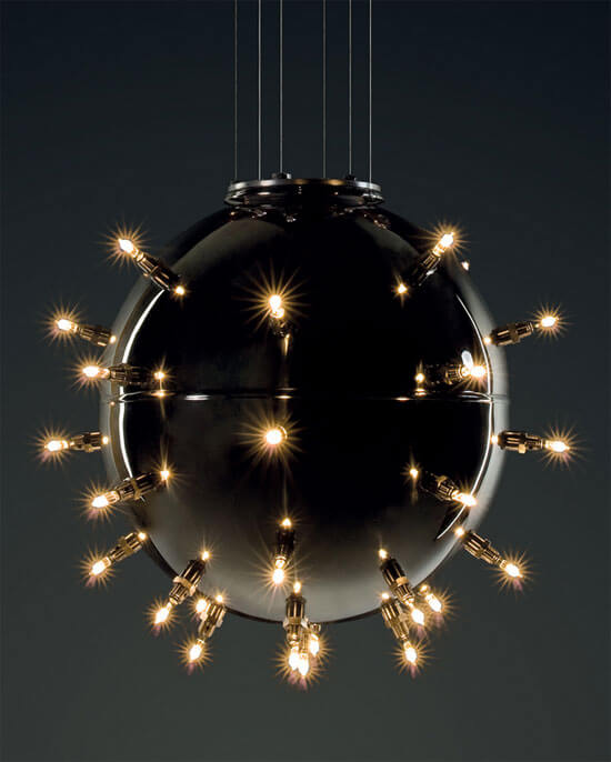 Ne è un perfetto esempio la lampada beMine 33, una rivisitazione in chiave contemporanea (e non esplosiva) di una mina marina, in forma di lampada a sospensione o da terra illuminata da 33 lampade alogene. La lucentezza dell’acciaio inox lucidato a specchio e i riflessi sulla superficie della sfera trasformano questa lampada in un oggetto quasi astratto e metafisico, un archetipo di bellezza assoluta e di perfezione.