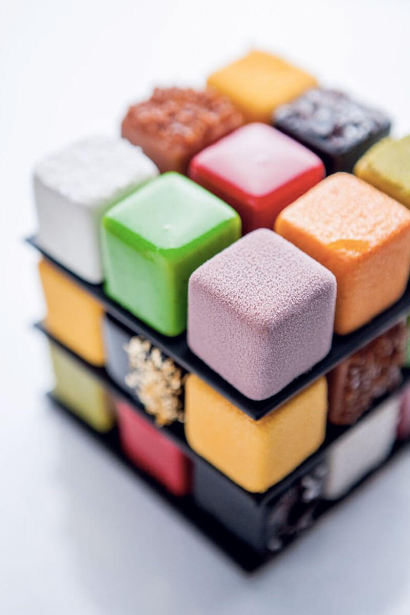 Pur così giovane è già capo pasticciere al ristorante Le Dalí dell’Hotel Le Meurice di Parigi ed è diventato famoso per la sua Rubik Cake, una torta ispirata al celebre cubo di Rubik che spopolava negli anni ’80. Creata per la sua collezione di dolci “Les Emotionnelles“, la Rubik Cake è un capolavoro di perfezione, composta da ben 27 cubetti di torta, tutti di colori e gusti diversi, come ciliegia e dragoncello, albicocca e rosmarino e cioccolato e arachidi… una gioia per il palato ma anche per gli occhi.