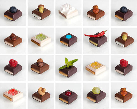 Il claim è “Don’t play with food” ma invece quello che il progetto suggerisce è proprio di giocare col cibo: il nuovo tipo di cioccolatino componibile è infatti totalmente personalizzabile, da inventare e assemblare in base ai propri gusti grazie ai tre diversi elementi che lo compongono: la base, il ripieno e il topping!