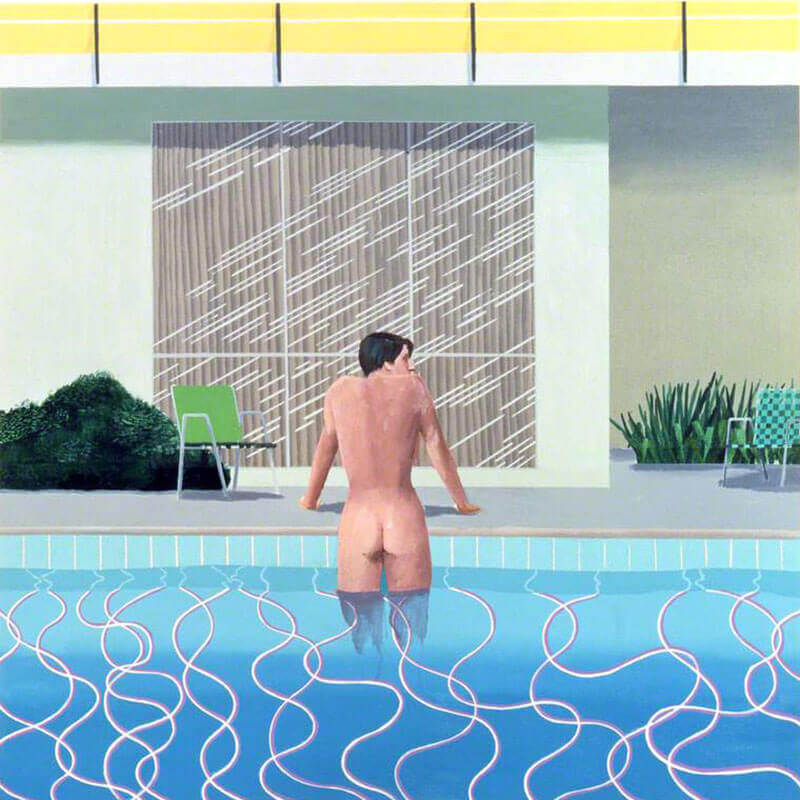 Poche opere incarnano questa sensazione meglio dei suoi quadri ambientati in piscina; immagini che evocano una vita edonistica, affascinante ed esotica sotto il caldo sole della California, attraverso le quali l’artista lasciava trasparire in modo discreto la sua omosessualità (che all’epoca in Gran Bretagna era ancora illegale).