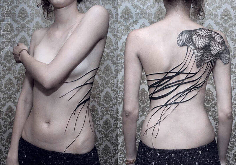 Ammira la gallery con tutti i suoi tatuaggi astratti sul sito Dots to Lines!