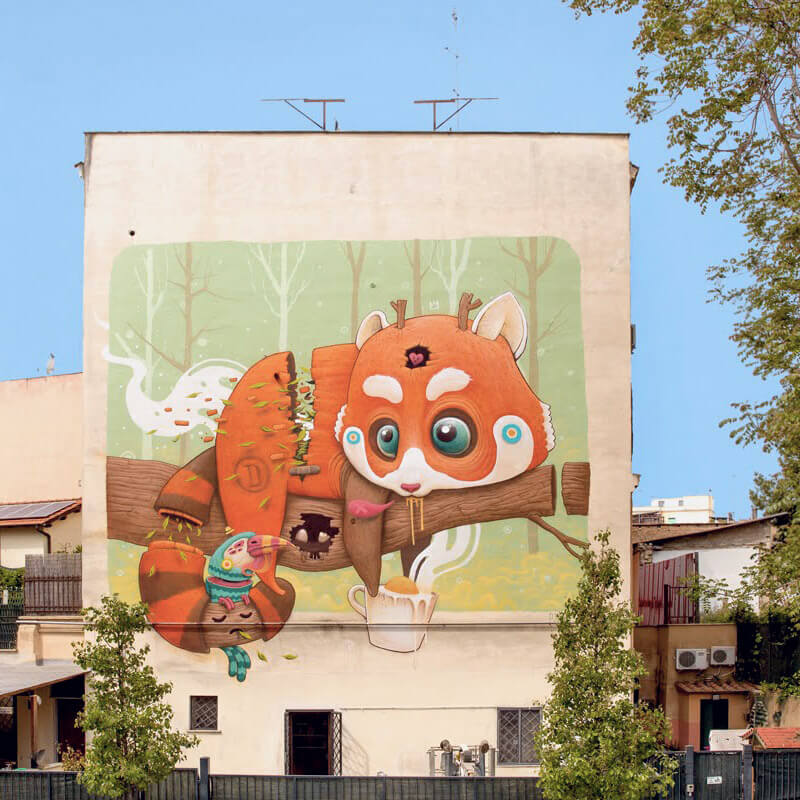 La natura e gli animali sono il tema centrale della sua produzione artistica espressa attraverso un linguaggio buffo e ironico. Il suo sguardo sul mondo mantiene ancora oggi la sincerità e la purezza di quando era bambino. I suoi animali, colorati e assurdi, popolano un mondo surreale pieno di dettagli immaginari, paesaggi affollati di elementi fiabeschi e scenari fantastici tutti da esplorare. Questi bizzarri animali si rivolgono a tutti noi lanciandoci un monito e mettendoci in guardia contro i cambiamenti climatici e le possibili catastrofi ambientali che ci aspettano.