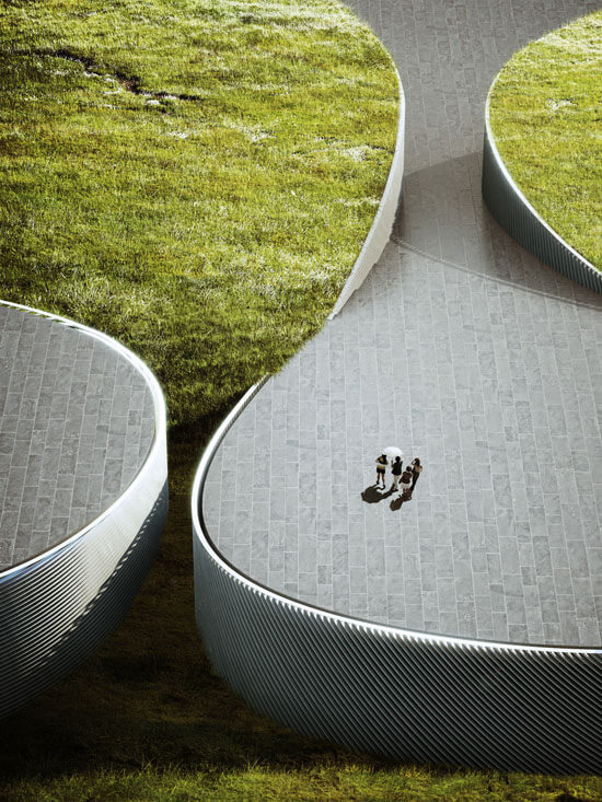 Il Museo del Corpo Umano, che avrà una superficie di ben 7.800mq, sarà luogo di seminari, mostre e performance ed è concepito come un luogo di contatto fra il parco e la città, fra la natura e l’architettura che, nel vero senso della parola, si abbracciano incastrandosi l’una con l’altra. La forma del museo infatti è morbida e sinuosa, uno spazio continuo composto da 8 “dita che si estendono nel parco o che si ritraggono a lasciar entrare la natura. La facciata è concepita come un continuum fra interno ed esterno, una membrana sinuosa che perimetra la struttura e che dà forma agli spazi interni (che si susseguono in maniera fluida) e alle aree verdi all’esterno.