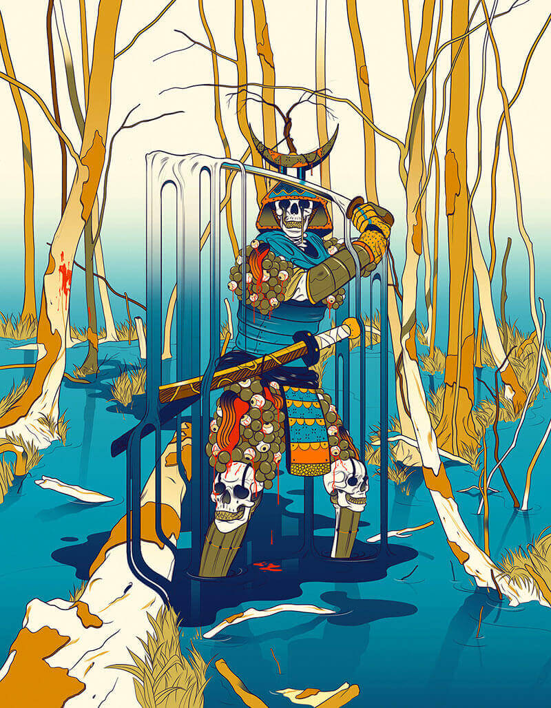 Oltre al grande amore verso l’arte giapponese, Andrew Archer è anche un grande appassionato di basket (che gioca lui stesso fin da ragazzino) e ha cercato di fondere questi due temi nei suoi artwork. Nel 2013 ha iniziato a creare la serie Edo Ball le cui illustrazioni uniscono in modo incredibilmente fluido due mondi apparentemente inconciliabili. D’altra parte Andrew crede fermamente nella possibilità di mescolare tradizioni, culture ed epoche diverse.