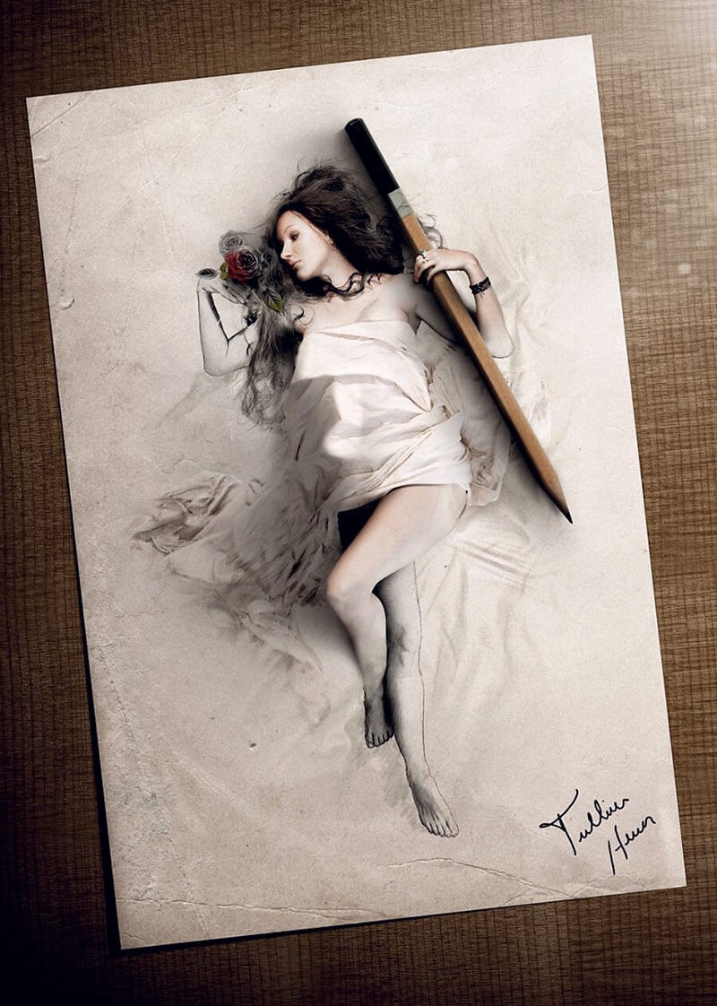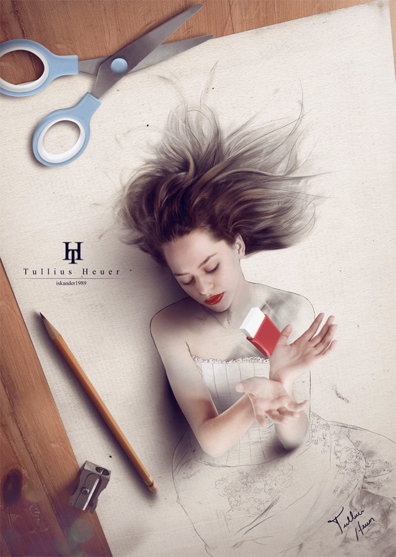 Nel tempo libero però ama realizzare i suoi progetti personali e mostrarli su DeviantArt con il nickname di Iskander1989.  E così è diventato presto famoso per il suo talento e la sua capacità di fondere in modo invisibile la fotografia e l’illustrazione per ottenere immagini tridimensionali strabilianti in cui il disegno sembra prendere vita.