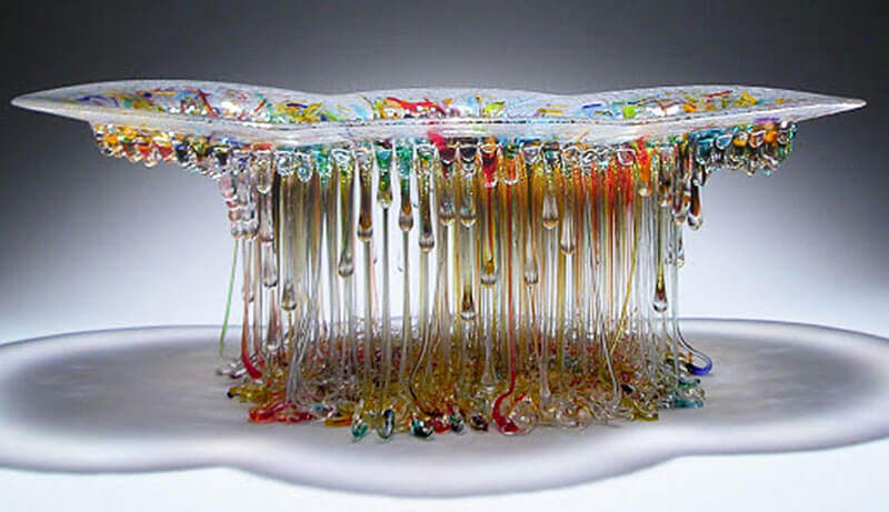 L’artista ha lavorato a lungo con la vetrofusione fino a mettere a punto la sua personale tecnica di fusione del vetro, sviluppata dopo anni di prove e sperimentazioni.