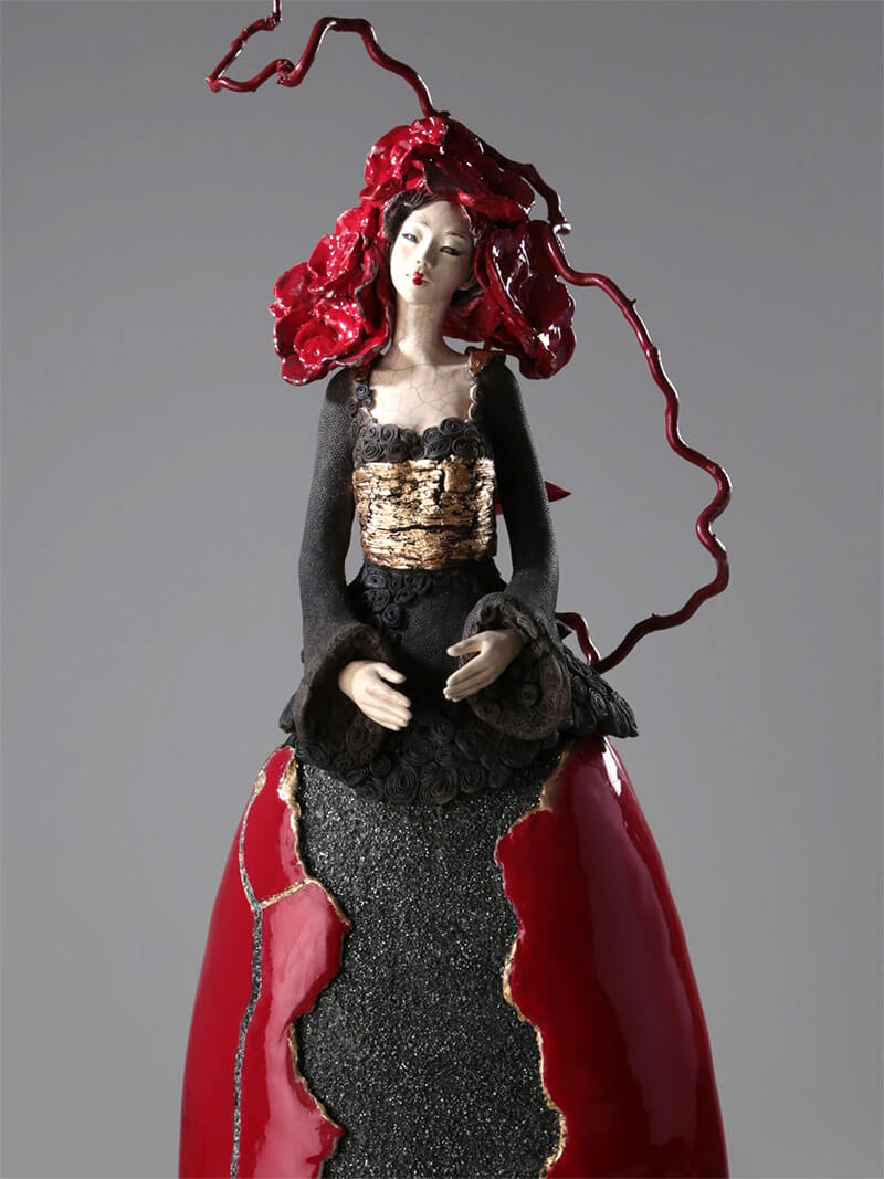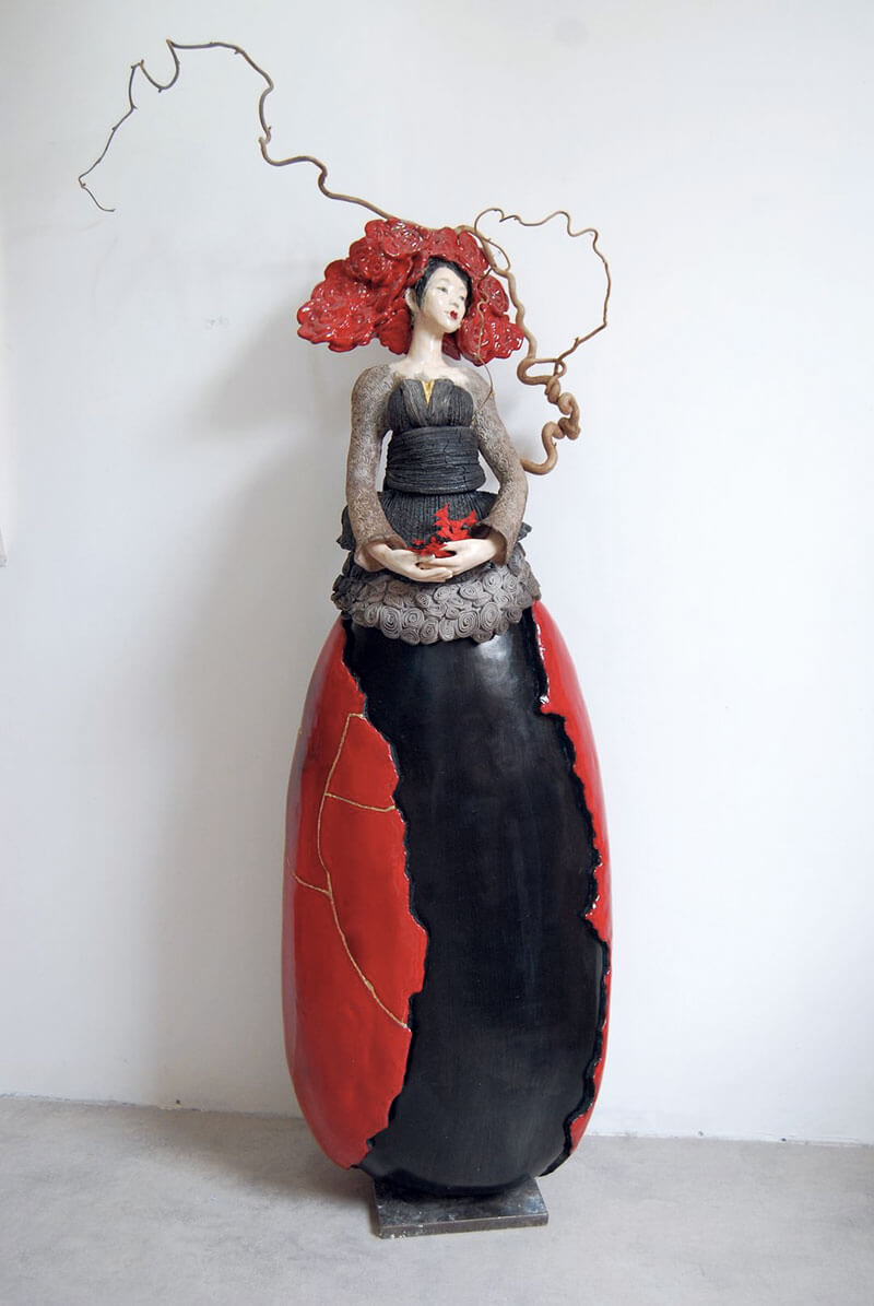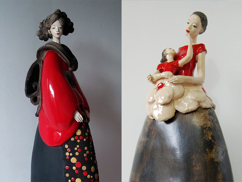 Sculture di ceramica raku della serie “Figlie del Sol Levante” ispirata alle donne orientali