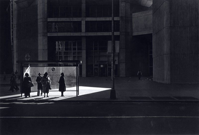 Ray K. Metzker usava luci ed ombre come i suoi personali pennelli per dipingere la sua realtà con la macchina fotografica, concentrandosi su pochi elementi: pedoni solitari, ridotti a semplici silhouettes, e spazi urbani trasformati dal sole e dalle ombre, sintetizzando l’immagine per lasciare solo l’essenziale, la forma della luce.