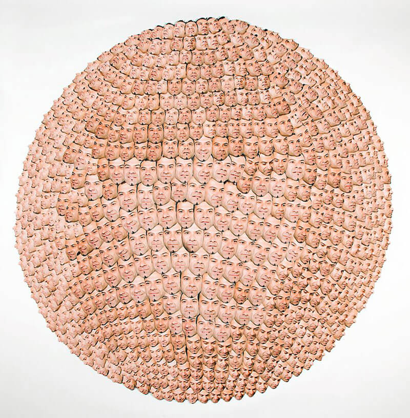 Focalizzata sul tema del ritratto, Justine Khamara utilizza foto di visi o di altre parti del corpo per ottenere forme tridimensionali che mantengono l’aspetto originario ma con un surreale effetto distorto. La cosa incredibile è che le modifica senza l’uso di alcun software o computer ma utilizzando soltanto mani e forbici, ritagliando distorcendo e modellando ritagli di volti umani che riassembla trasformandone l’essenza.